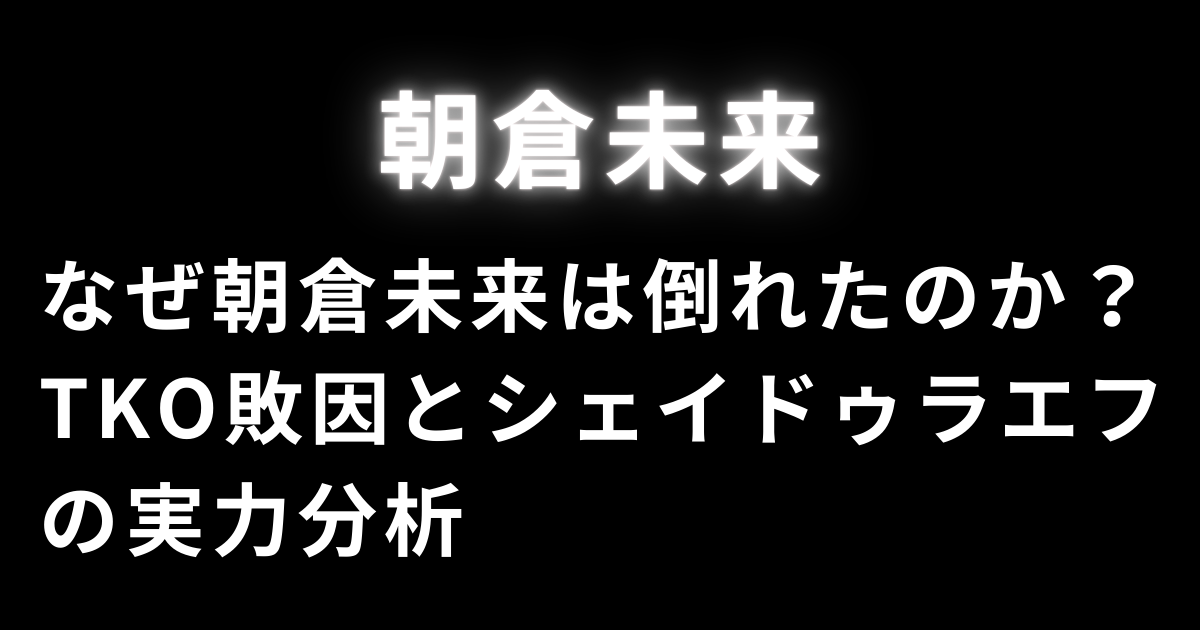 この記事では、朝倉未来が敗北を喫した本当の理由を丁寧に分析するとともに、相手のシェイドゥラエフとはどんな選手なのかをwiki風に解説。
