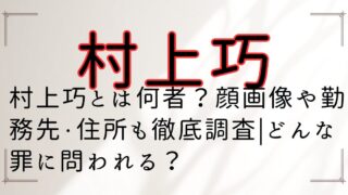 トレンド 村上巧とは何者?顔画像や勤務先・住所も徹底調査|どんな罪に問われる? 村上巧容疑者の顔画像や勤務先、住所などのプロフィールから、犯行内容や罪状、ネットの反応までを丁寧に解説。事件の背景や今後の展開もわかりやすくまとめています。 2025.10.17 トレンド