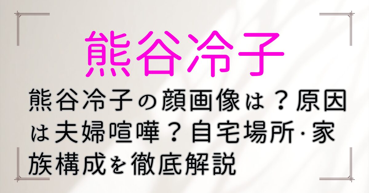 この記事では、熊谷冷子容疑者の人物像や顔画像の有無、事件現場となった自宅の場所、夫婦の関係性や家族構成、さらに今後の法的な処遇についても丁寧に整理し、解説しています。検索では見つかりにくい情報も、わかりやすくお伝えします。