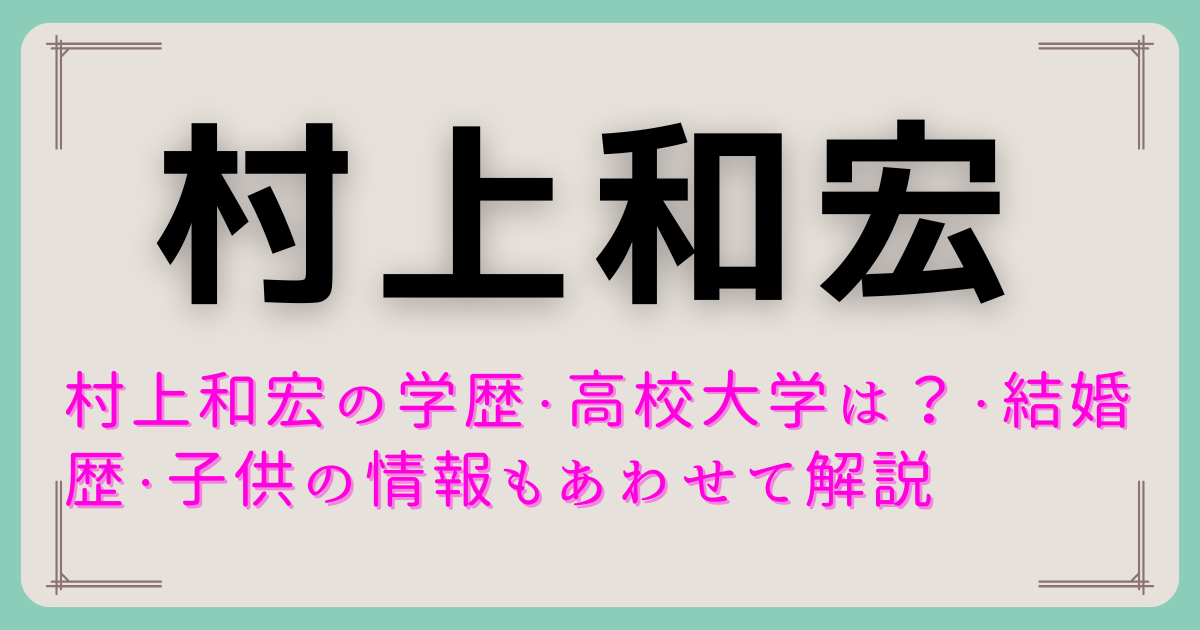 - 3. 村上和宏の私生活:結婚している?