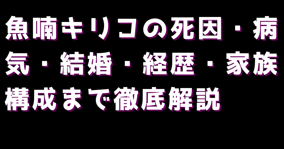 この記事では、公式情報や報道内容をもとに、魚喃キリコさんの死因や病気の可能性、結婚歴や家族構成、経歴や代表作までを丁寧に整理し、ひとつひとつの疑問に答えていきます。