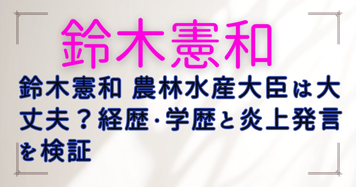 この記事では、鈴木大臣の過去のキャリアから現在の発言内容までを整理し、政策の背景や国民の反応を丁寧に読み解きます。検索された「不安」「大丈夫」「炎上」「経歴」「学歴」といった疑問の答えが、ここにあります。