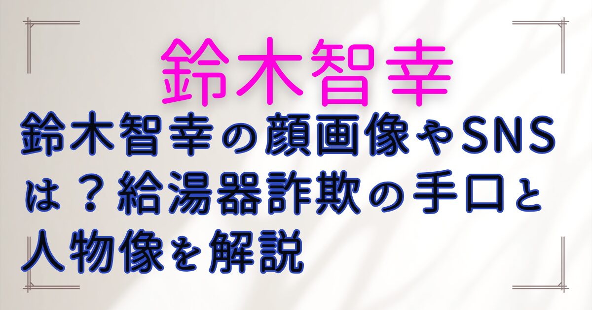 給湯器の点検を装って高齢女性から現金をだまし取ったとして逮捕された鈴木智幸容疑者。このニュースを目にした多くの方が、「鈴木智幸とは何者なのか?」「顔画像は?」「SNSの情報はあるのか?」と関心を寄せています。