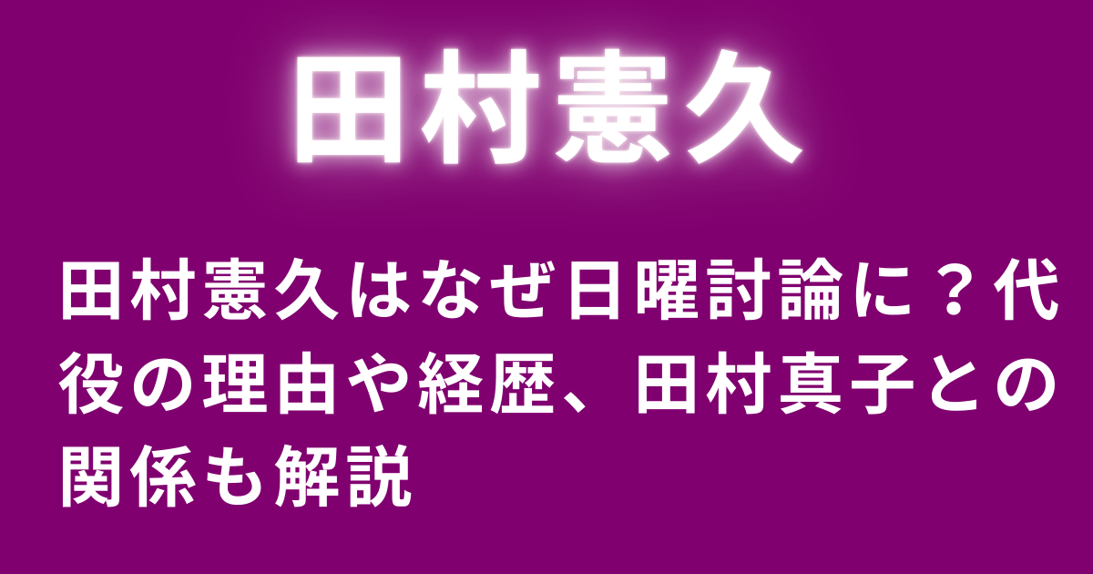 本記事では、田村氏が代役として選ばれた理由や当日の状況、視聴者の反応を丁寧に解説。また、政界での実績やプロフィール、家族にまつわるエピソードにも迫ります。